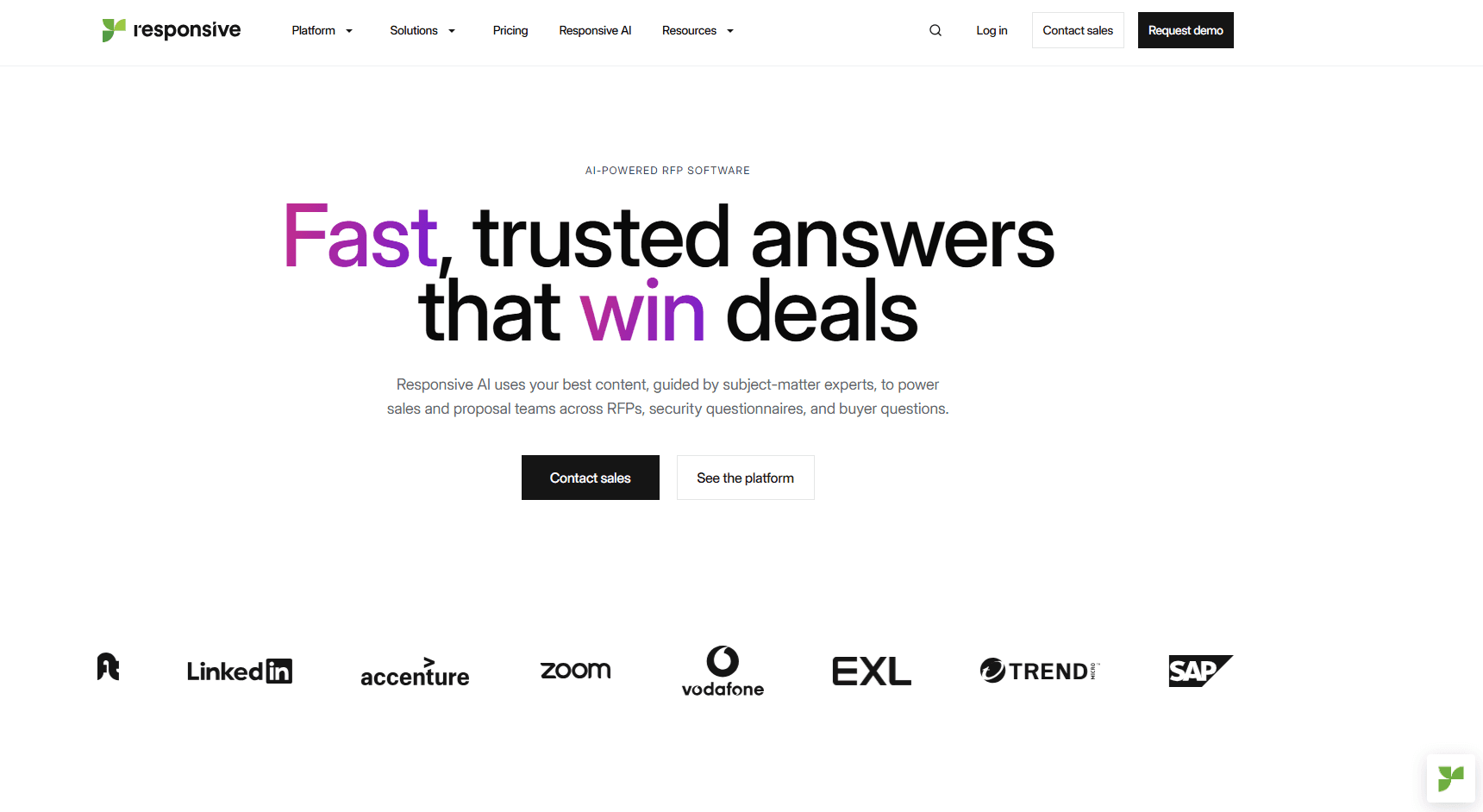 Responsive is one of the strongest all-around RFP response platforms for larger teams because it combines AI drafting, governed content reuse, requirements analysis, and cross-functional collaboration in one strategic response management platform.