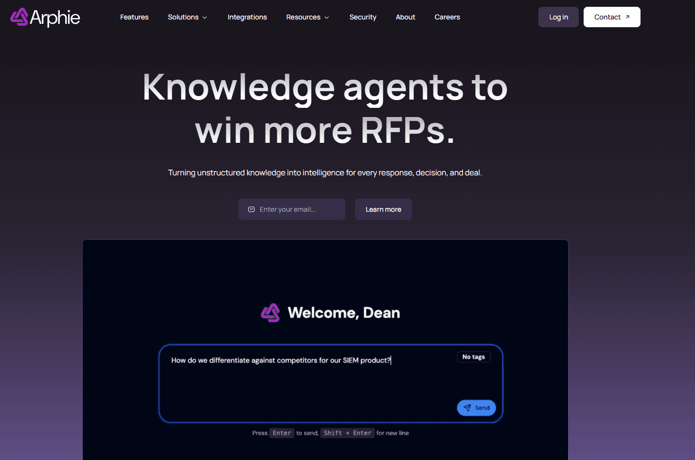 Arphie is a newer AI-native platform built specifically for RFPs, DDQs, and security questionnaires, with a strong emphasis on accuracy, traceability, and source-based responses. Instead of relying purely on generative output, it focuses on grounding answers in approved internal data, which makes it especially relevant for regulated industries and high-stakes deals.