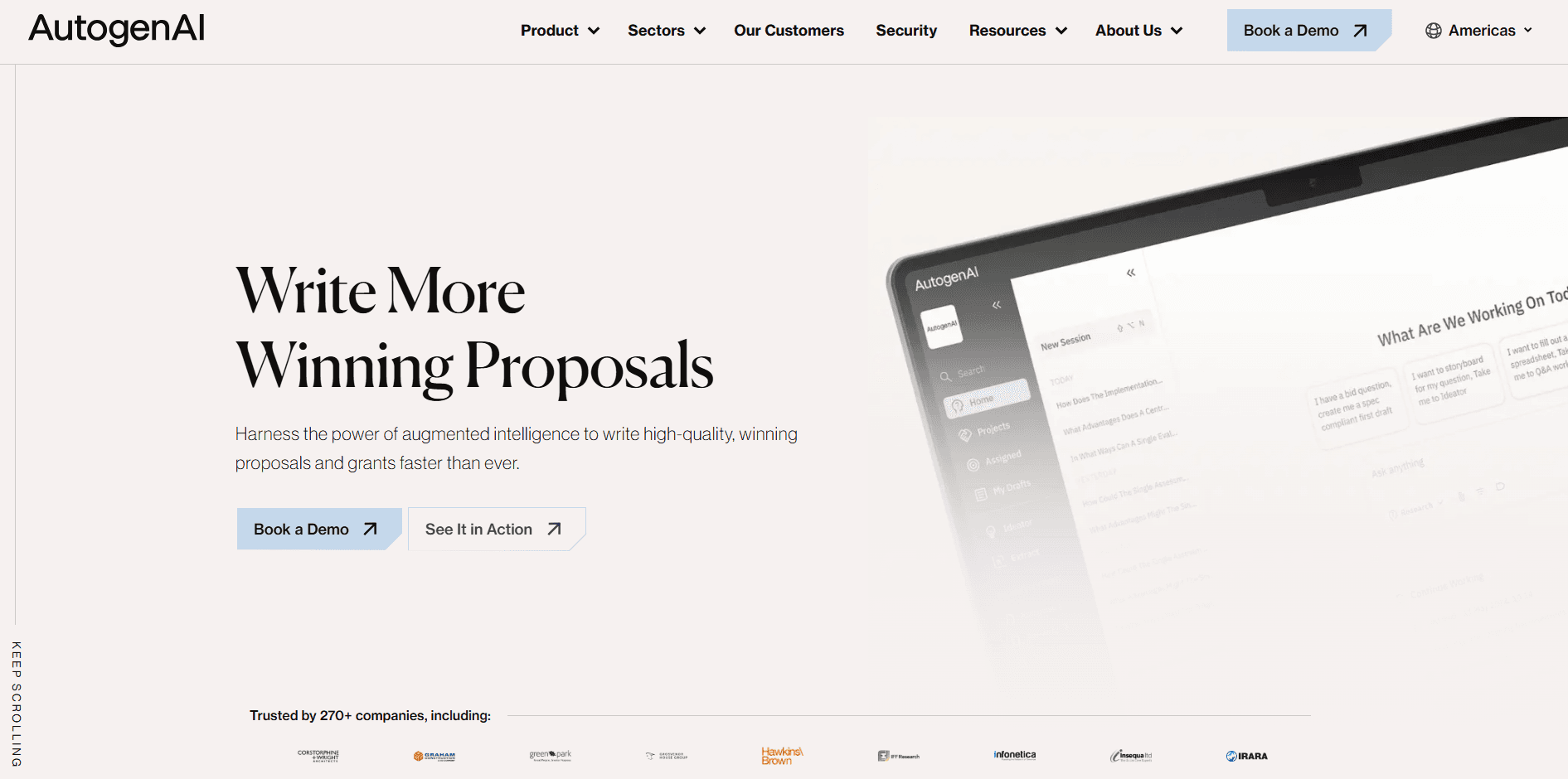 AutogenAI is an AI-first proposal writing platform designed to help teams generate high-quality, compliant responses quickly. It is particularly strong in environments where writing quality, clarity, and alignment with requirements are critical, such as public sector bids and formal tenders.