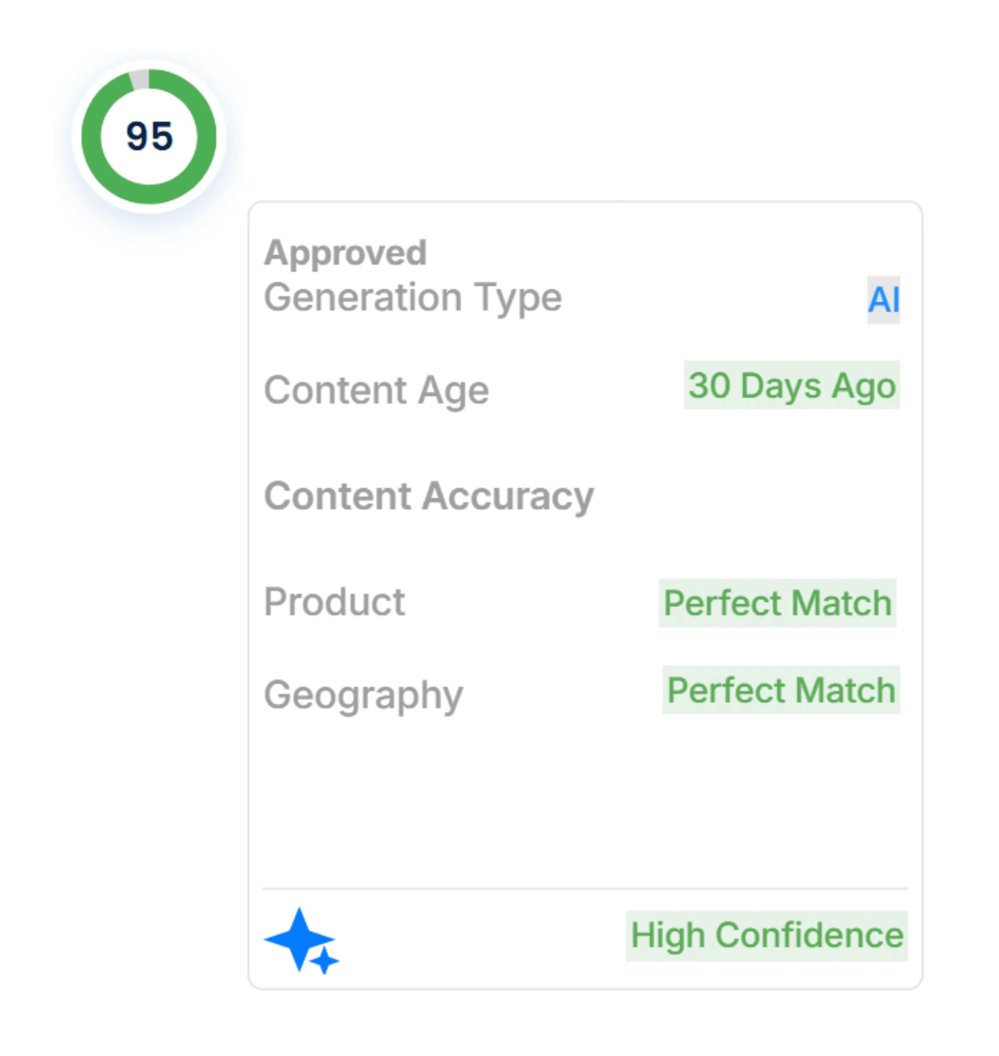 Each answer also shows sources, content age, and a confidence score, so you can see why it chose that content before you submit.