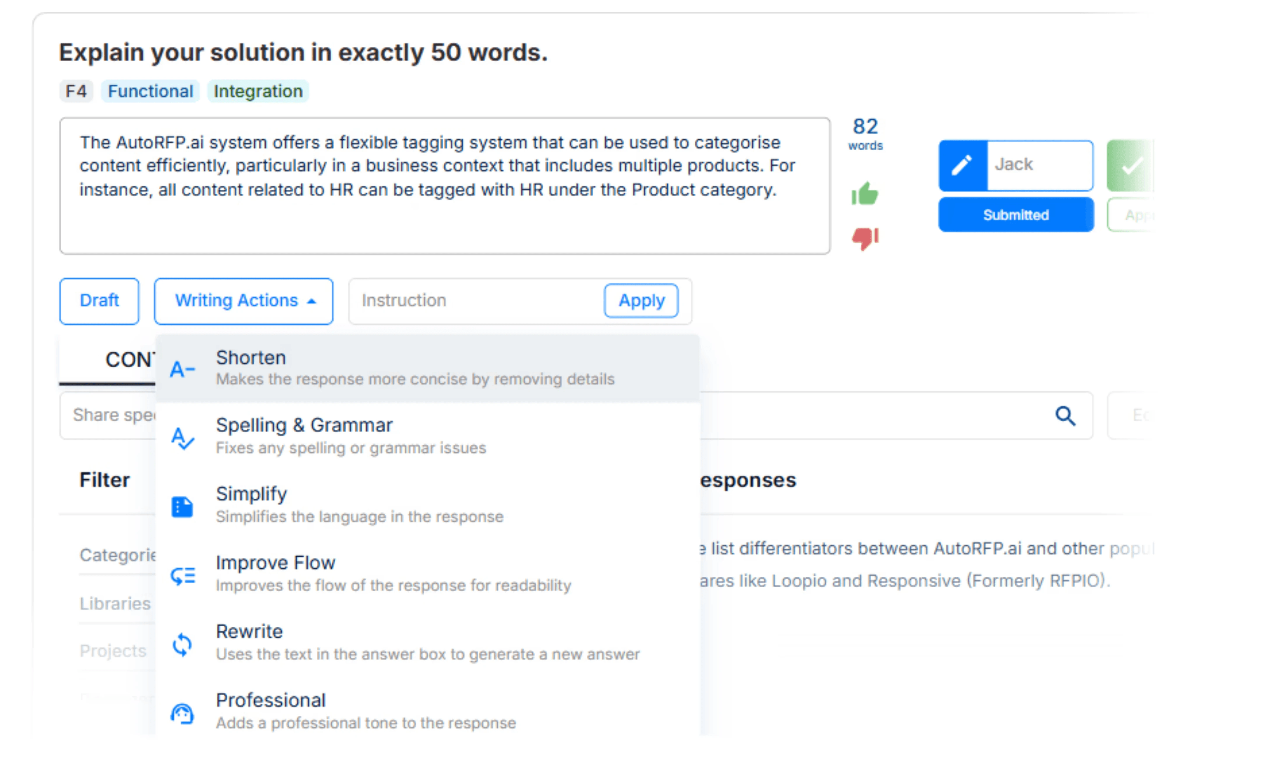 Side note: With AutoRFP.ai, you’re not getting generic AI free-writing; you’re generating on-brand drafts from your approved library using semantic search that understands context, not just keywords.