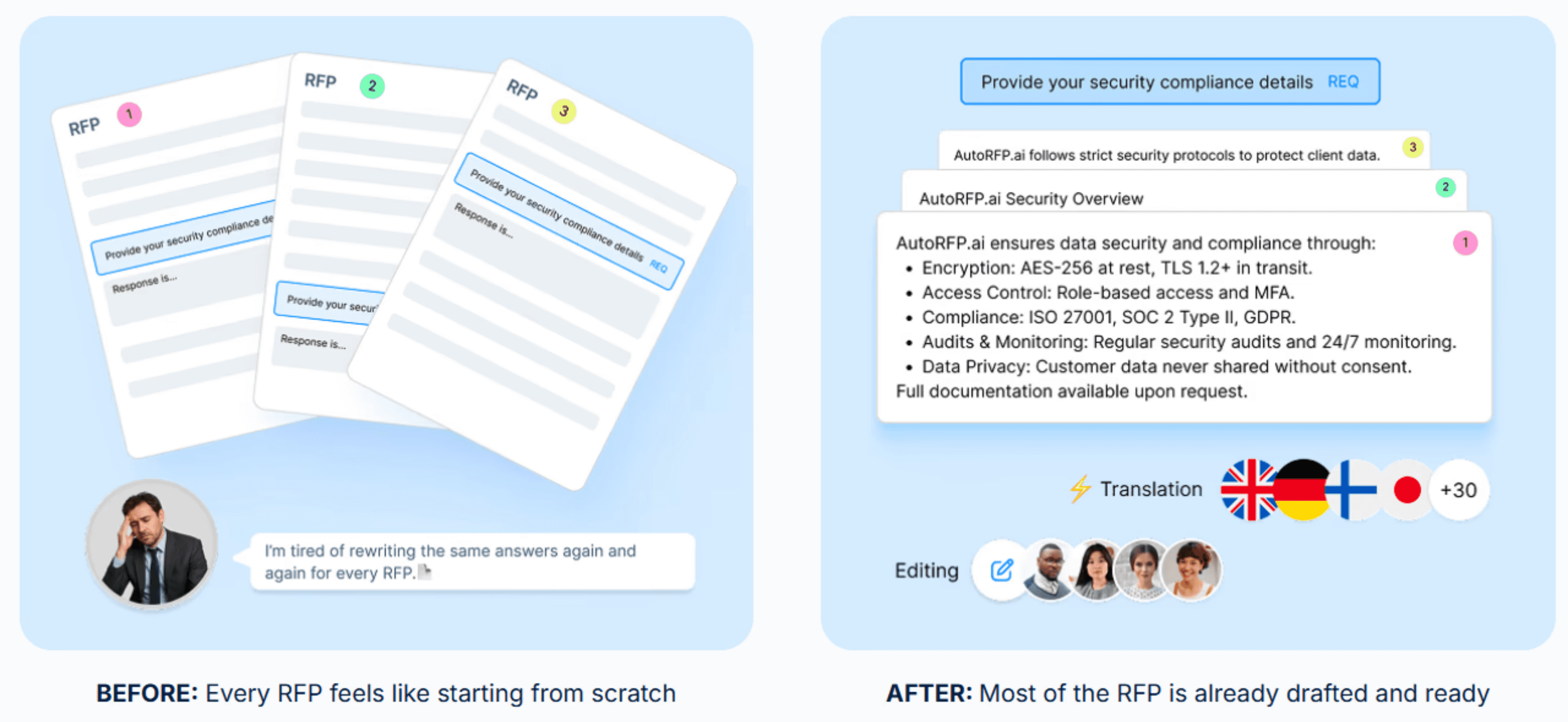 A self-updating library (like AutoRFP.ai’s approach) reduces that setup burden by learning from what you approve, so the library stays current without constant manual upkeep.