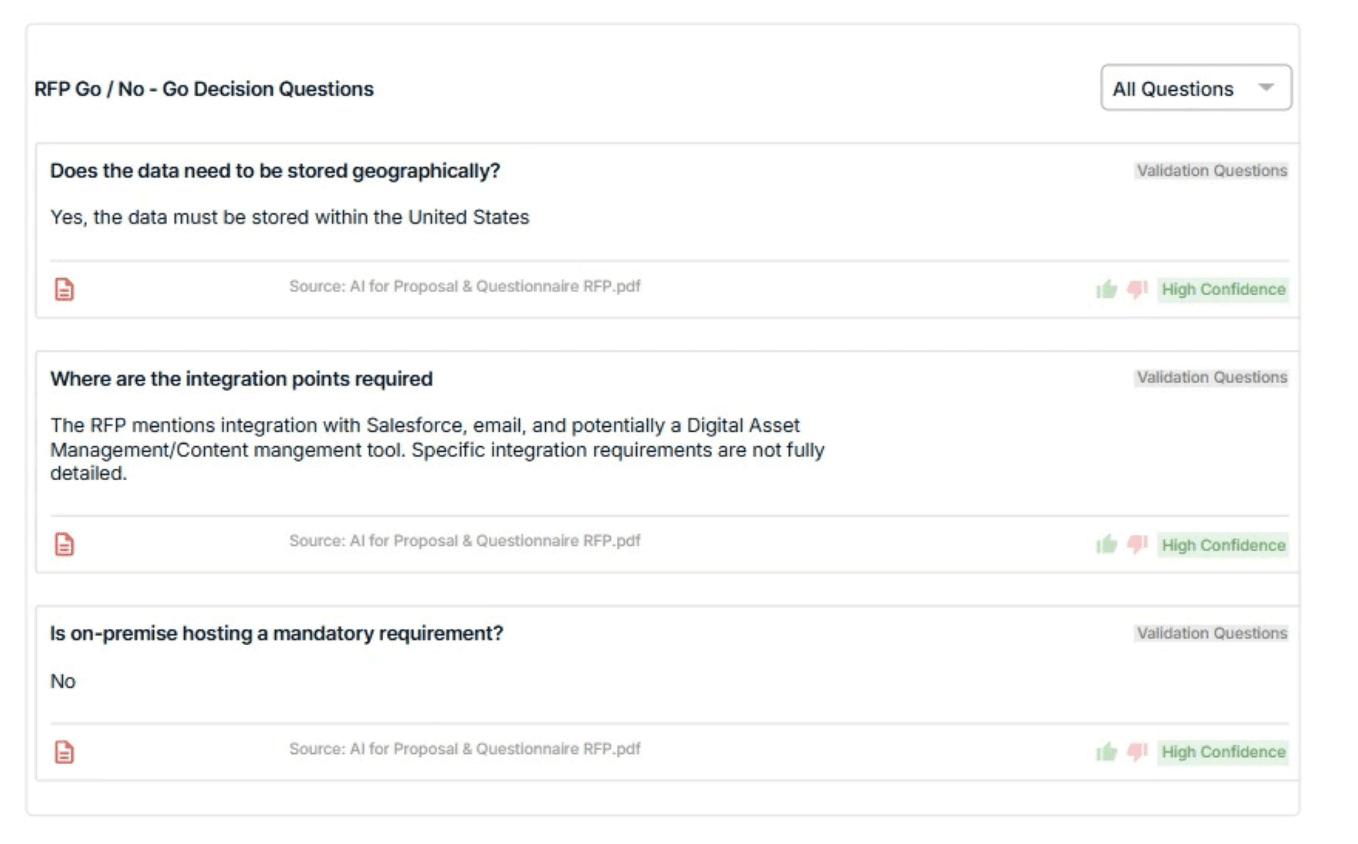 Lack of transparency (black box AI) | Hard to trust or audit why answers/scores were produced. | Use tools like AutoRFP.ai, where each response shows sources, content age, and confidence score, so no black box. |