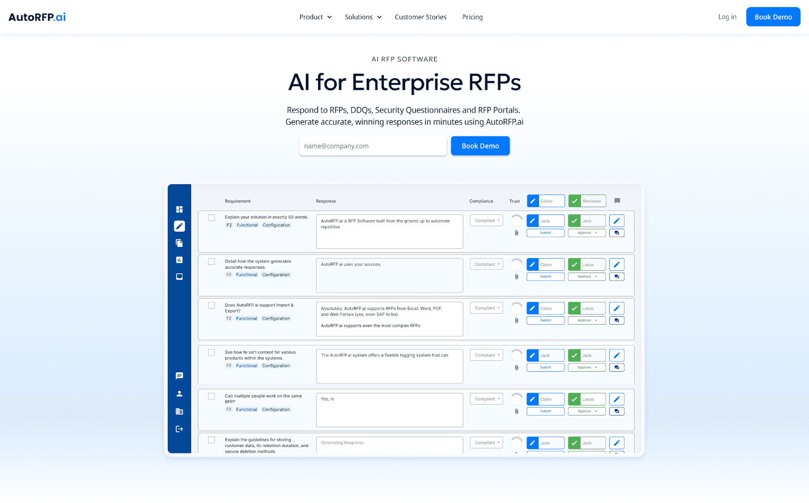 AutoRFP.ai is an AI RFP software built for enterprise teams that need to respond to RFPs, DDQs, and security questionnaires in minutes.
