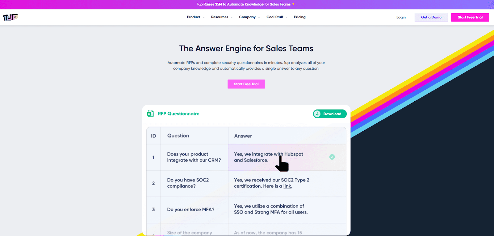 1up | Fast, low-cost AI questionnaire automation | Quick self-serve setup with free-trial-friendly onboarding | $300/month |