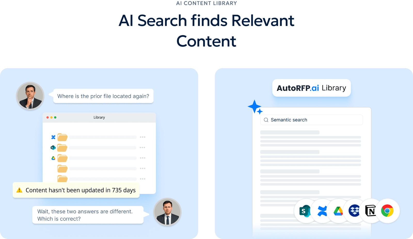 Meanwhile, AutoRFP.ai improves this with semantic search, so it finds meaning-based and conceptually related content, which helps you generate more accurate answers faster.