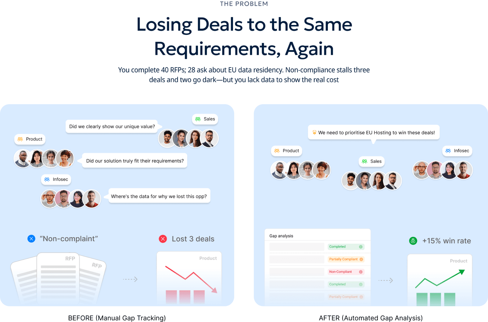 The RFP Gap Analysis Report helps you uncover recurring requirement gaps that may be costing you deals, without digging through old responses or building manual spreadsheets.