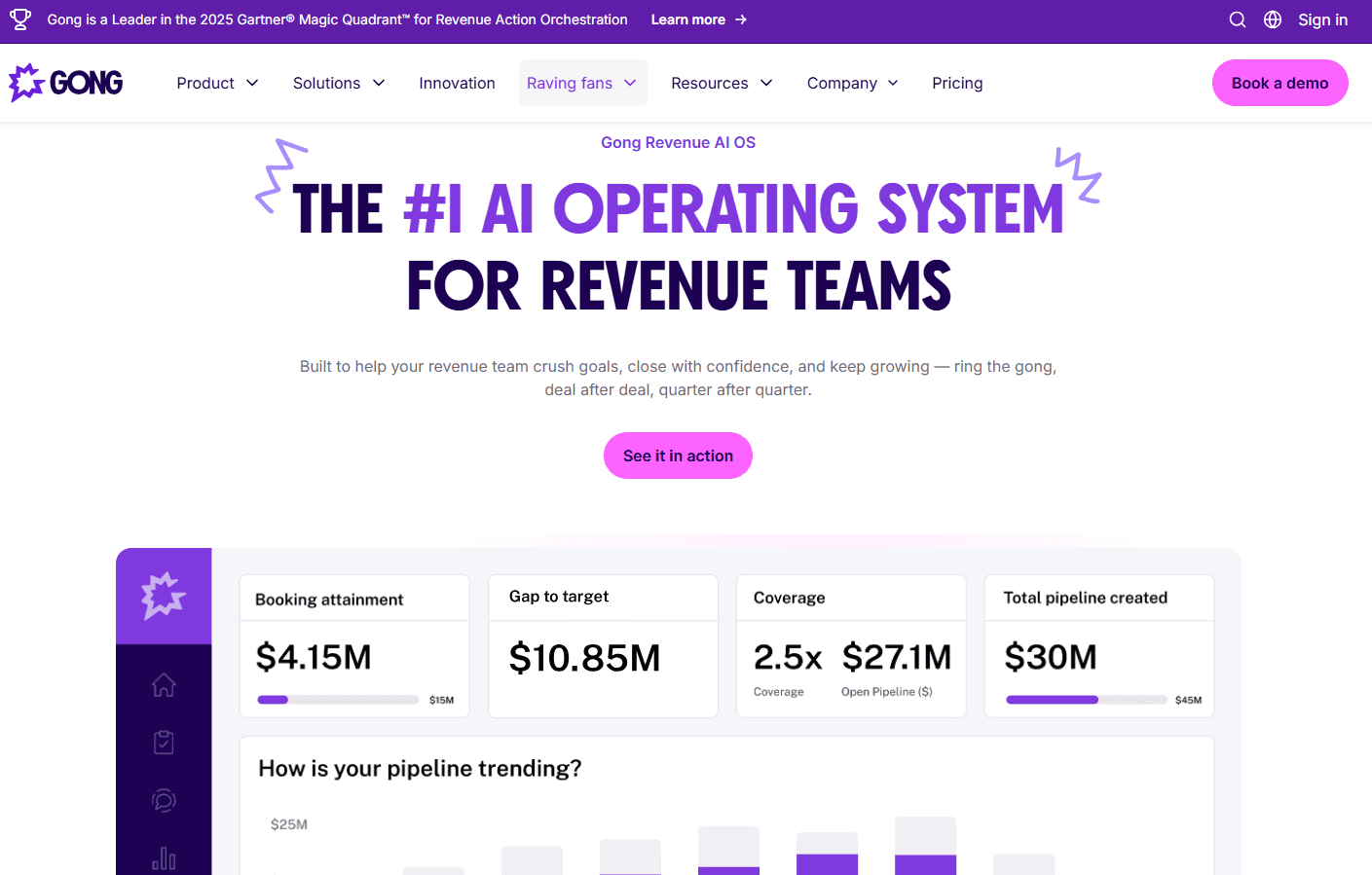 Gong: Best for sales managers and RevOps teams that want conversation-based deal risk signals and coaching insights at scale.