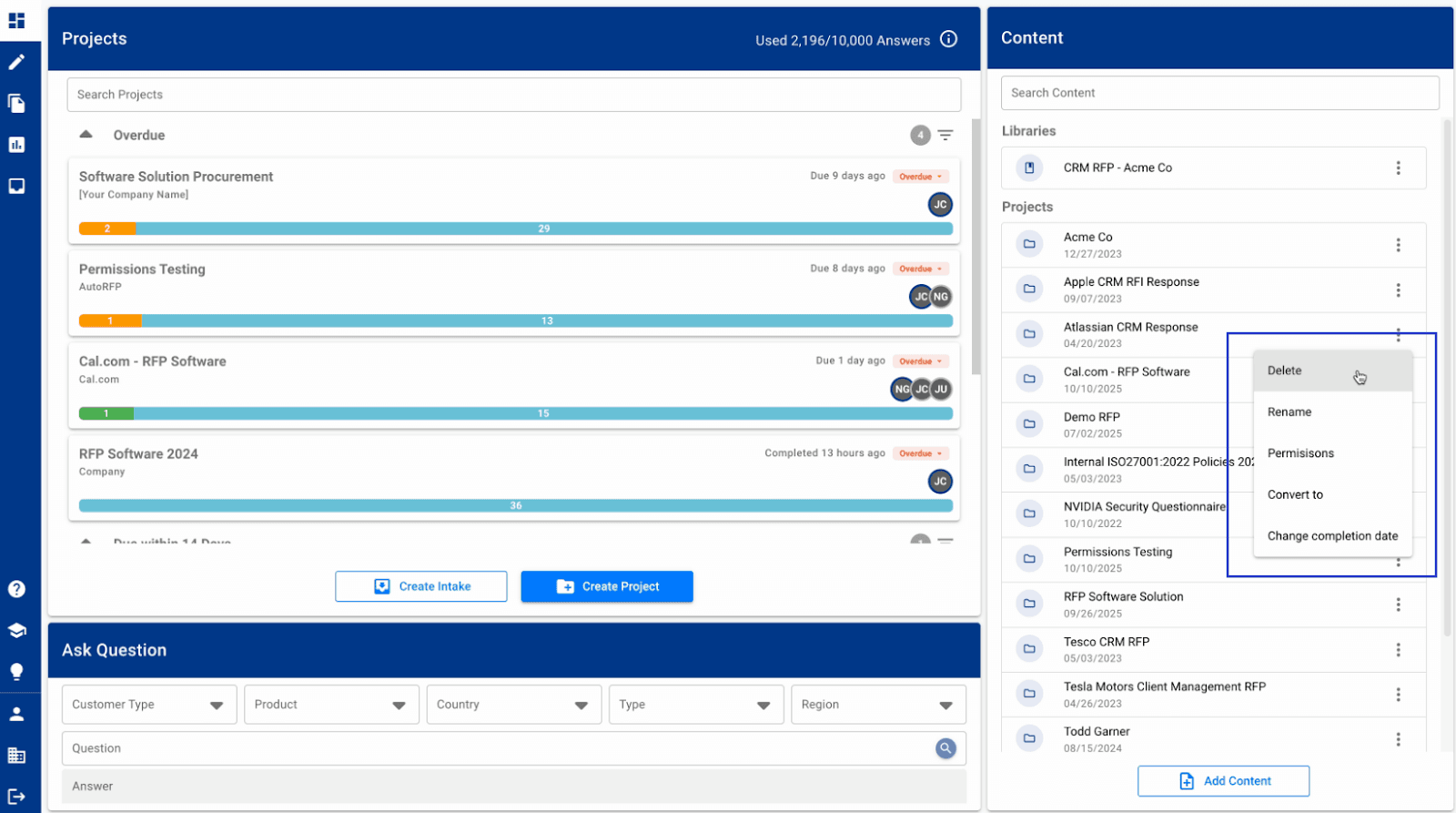 Example of deleting outdated content from the RFP library in AutoRFP.ai