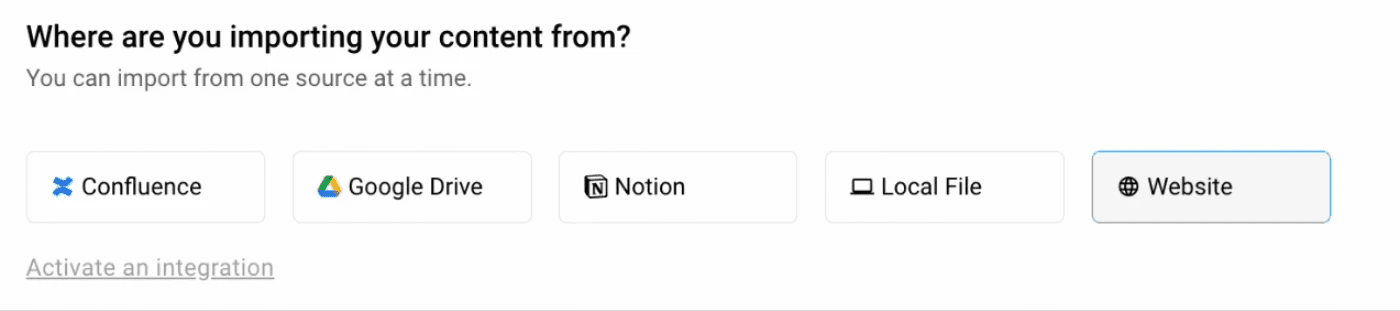 AutoRFP.ai’s import features support content sources such as Confluence, Google Drive, Notion, local files, websites, and more.