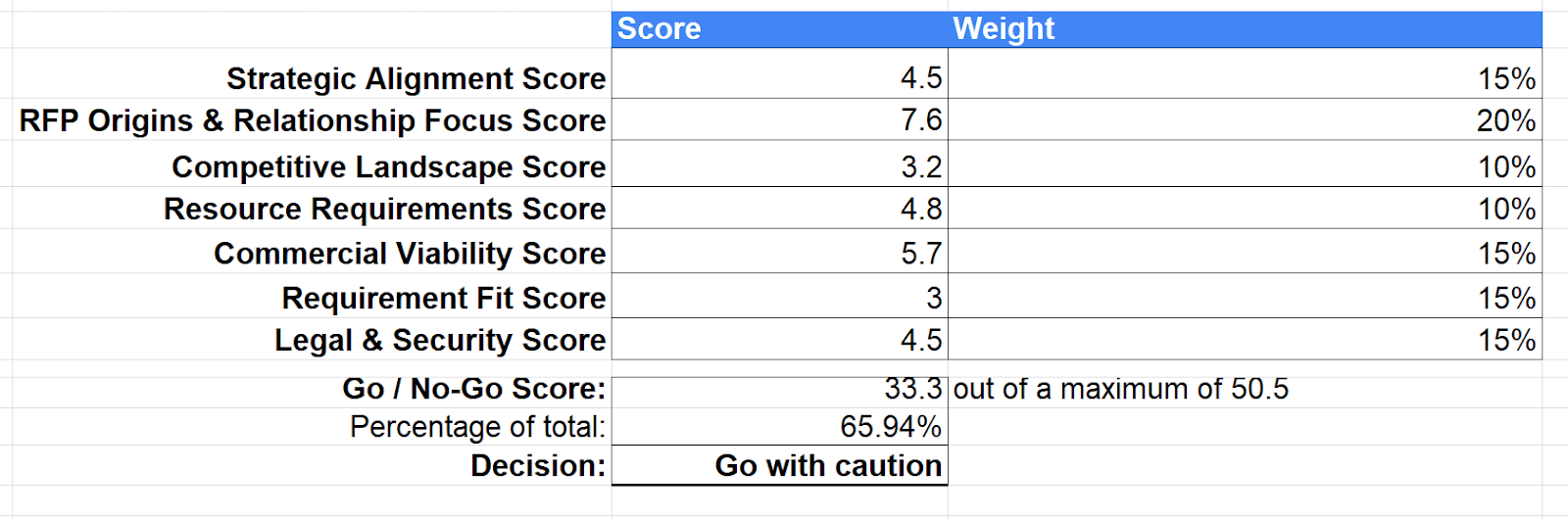 The Go/No-Go decision framework is a simple way to qualify opportunities before you invest valuable time and resources. Instead of reacting to every RFP, you use a structured scorecard to decide whether a proposal is genuinely worth pursuing.