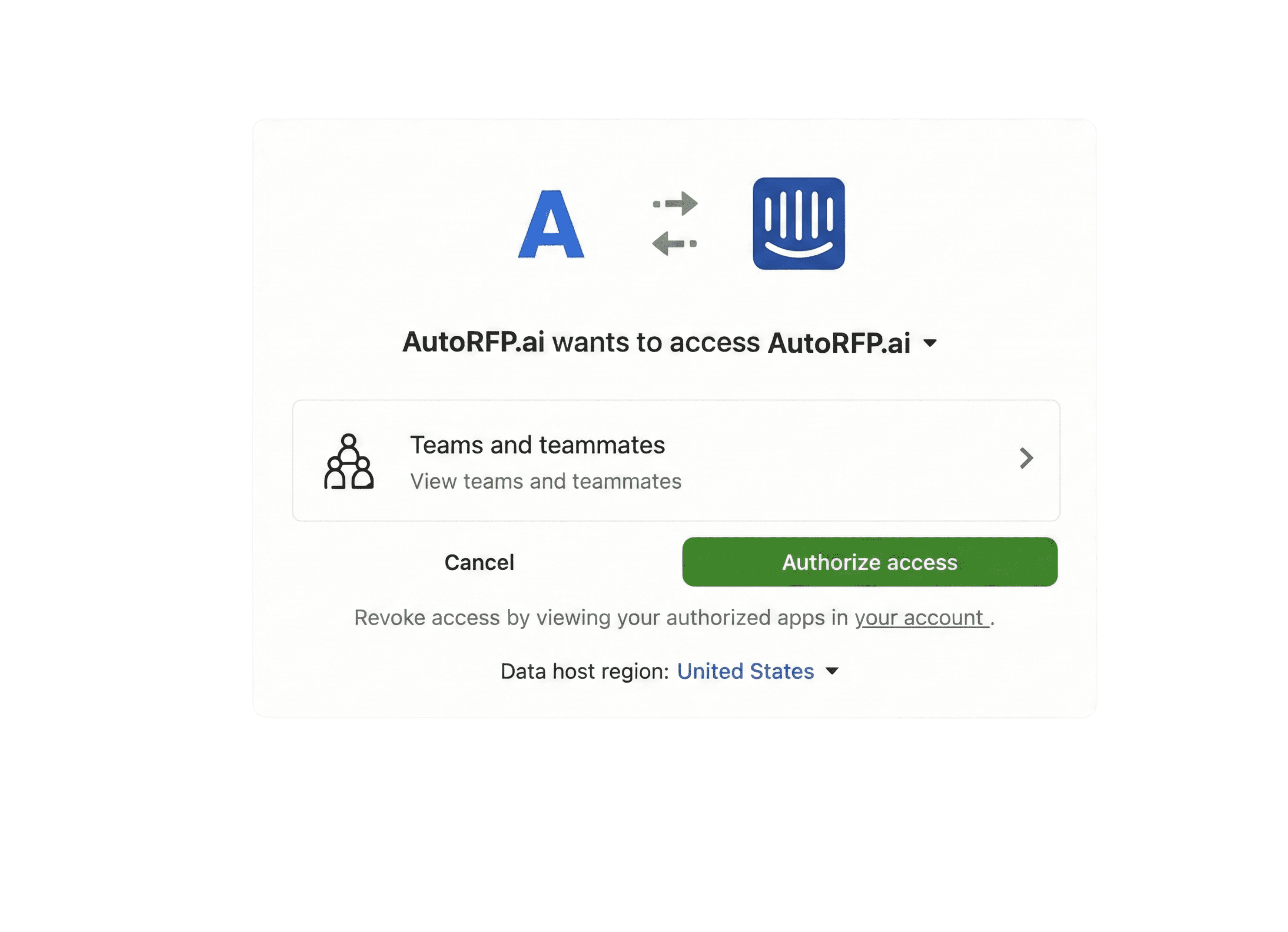 Click Create Connection and grant AutoRFP.ai read access to your Intercom help center. The integration uses account-level permissions, so you control exactly what gets synced. No sensitive customer conversation data comes through.